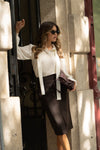 Camisa perola de manga comprida com laço no colarinho, confecionada em tecido leve e fluido que garante um caimento sofisticado. Ideal para compor looks elegantes tanto para o escritório quanto para ocasiões especiais, combina versatilidade com um toque clássico e feminino. Composição: 80% Viscosa, 20% Nylon.