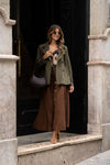 A mala de ombro em couro castanho escuro é o acessório ideal para quem procura elegância e praticidade no dia a dia. Com um design minimalista e acabamento sofisticado, esta peça é confeccionada em couro sintético texturizado de alta qualidade, oferecendo durabilidade e um toque refinado ao visual. A alça ajustável permite conforto no uso diário, enquanto o interior espaçoso garante funcionalidade para levar os seus essenciais com estilo. Um modelo versátil que complementa perfeitamente tanto produções urbanas quanto composições mais clássicas.