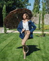 Blusa clássica branca com detalhe na parte da frente, ideal para um espaço sofisticado e ambiente de trabalho.
