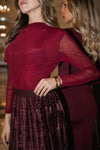 Body em tom borgonha, de mangas compridas e acabamento elegante, perfeito para jantares de Natal e festas onde o estilo sofisticado faz toda a diferença.
